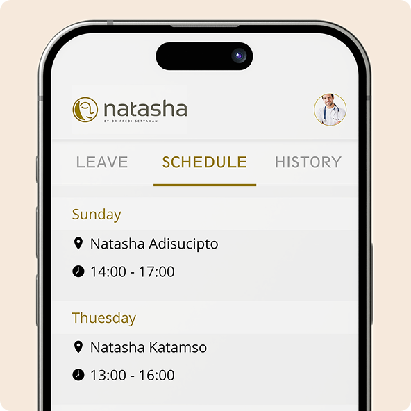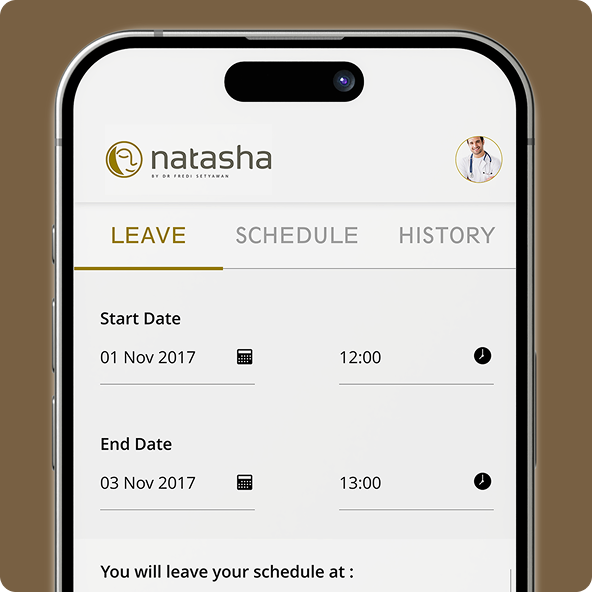 Natasha Doctor Apps is a mobile application designed to streamline administrative tasks for doctors at Natasha Skin Clinic. The app provides essential features that enhance efficiency by allowing doctors to manage their schedules, request leaves, and access their profile and leave request history in a seamless digital environment.