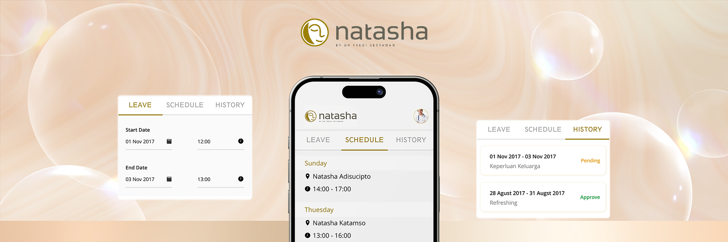 Before the implementation of Natasha Dokter Apps, doctors faced several inefficiencies in managing their work schedules and leave requests. The process of requesting leaves was manual and time-consuming, often requiring back-and-forth communication. Additionally, there was no centralized platform to view schedules, update profiles, or track leave history, leading to administrative bottlenecks and delays.