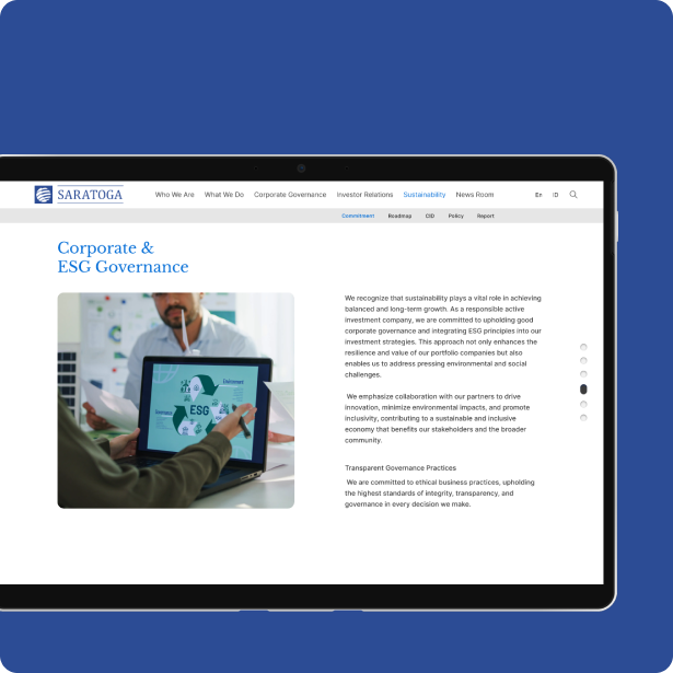 Recognizing the long-term impact of its investments, the company embeds ESG principles into its mission and actively integrates them across all portfolio operations. Under its Corporate Governance framework, Saratoga maintains transparent and ethical management by adhering to global standards—such as the ASEAN Governance Scorecard—and following strict compliance protocols.