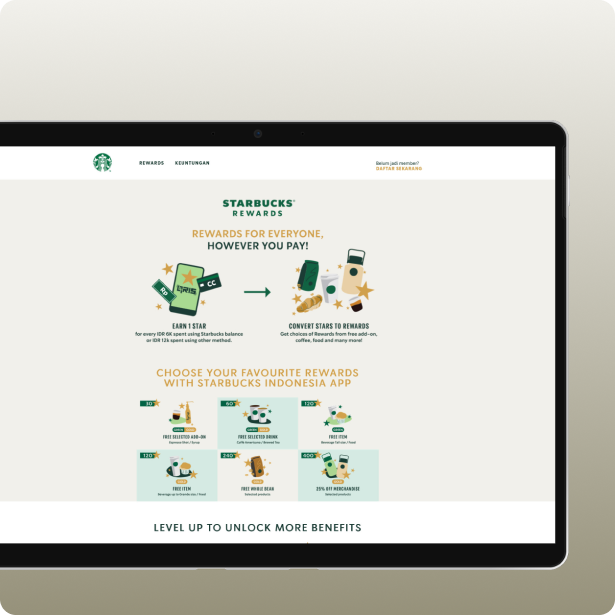 Technopartner Indonesia collaborated with Starbucks Indonesia to develop a modern and engaging website, designed to reflect the brand’s commitment to quality, ethical sourcing, and exceptional customer experience. The platform seamlessly showcases Starbucks' dedication to serving the finest coffee, sourced from Latin America, Africa, and Asia, and expertly roasted to bring out rich, balanced flavors.