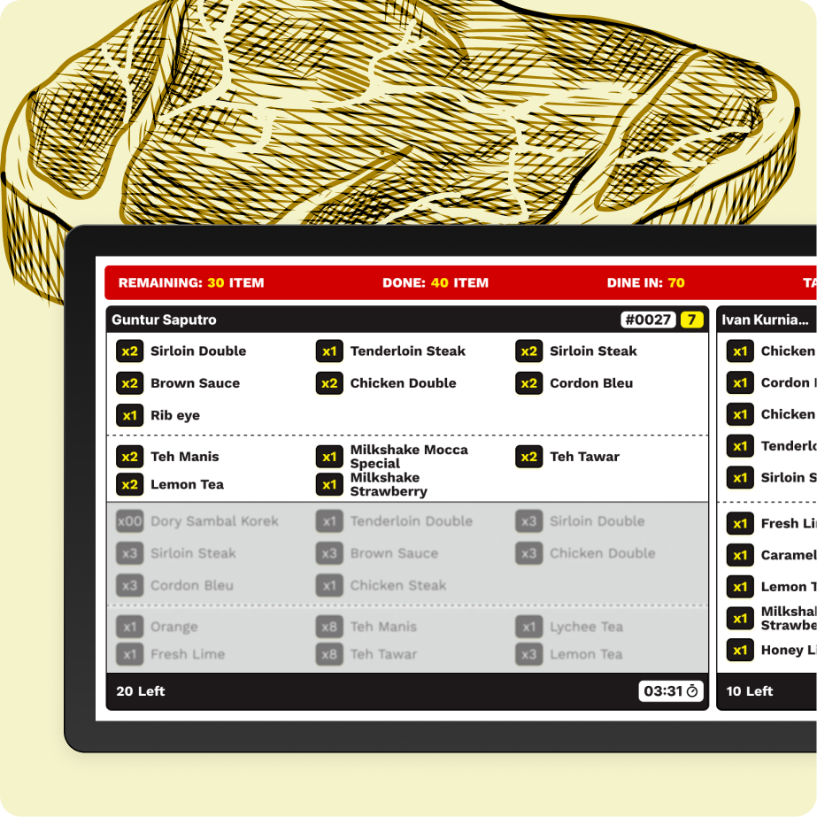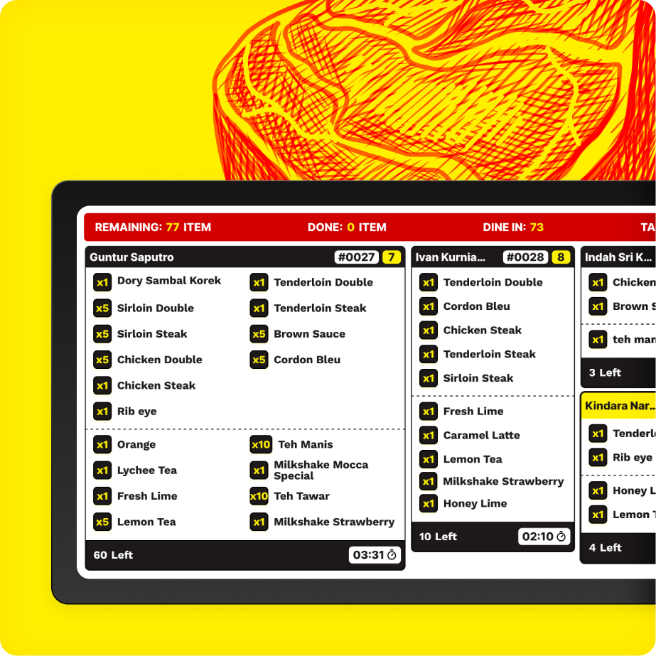 Waroeng Steak introduces a modern digital ordering concept that is fast, convenient, and efficient. This platform is designed to provide a digital screen used by kitchen staff to view incoming orders in real-time. This system helps streamline kitchen workflows, minimize errors in food preparation, and speed up the process from ordering to serving, ensuring a smoother kitchen operation.
